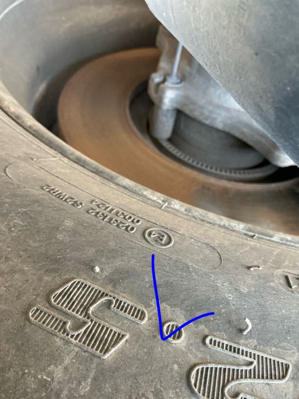 Axle 4 Right Inner TyreAluminium Rim, Retread Tyre315/80R22.5 Evergreen 7mm