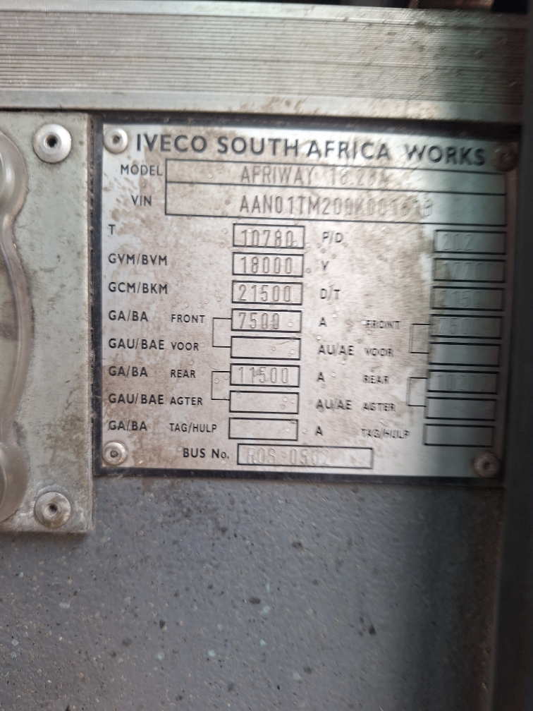 | Extras | R2 500 | Other 5 | Bullbar loose in bus to be fitted