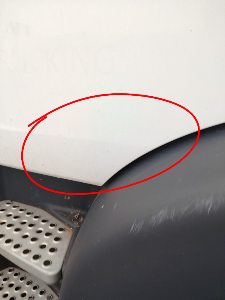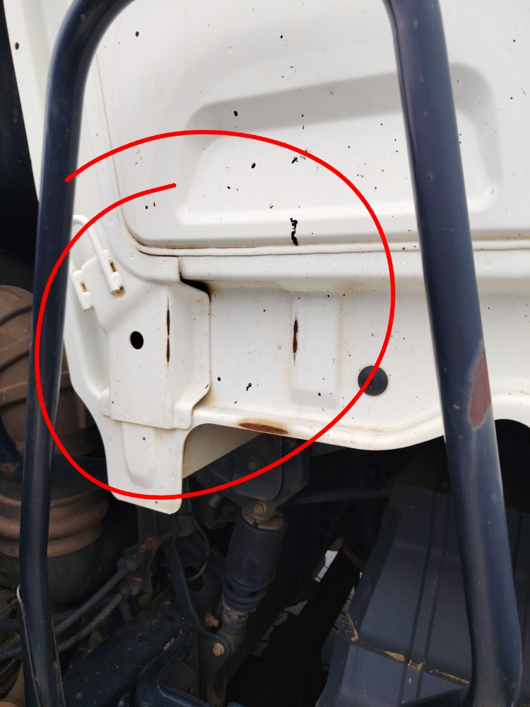 Rear CabR1 500Scratch, Rust, Chip, Fair Wear & Tear, RepairMultiple minor chips on the back of cab-noted as fair wear Deep scratches on cab RHS bottom rear, surface rust visible-repair