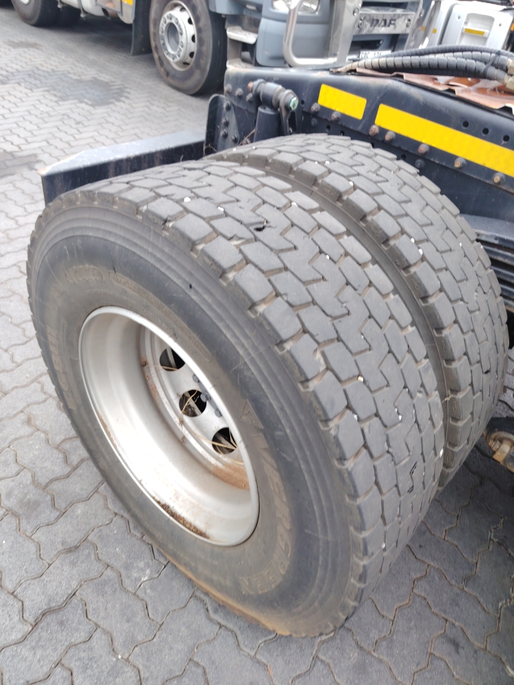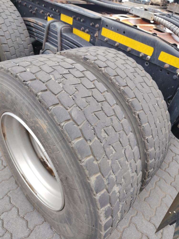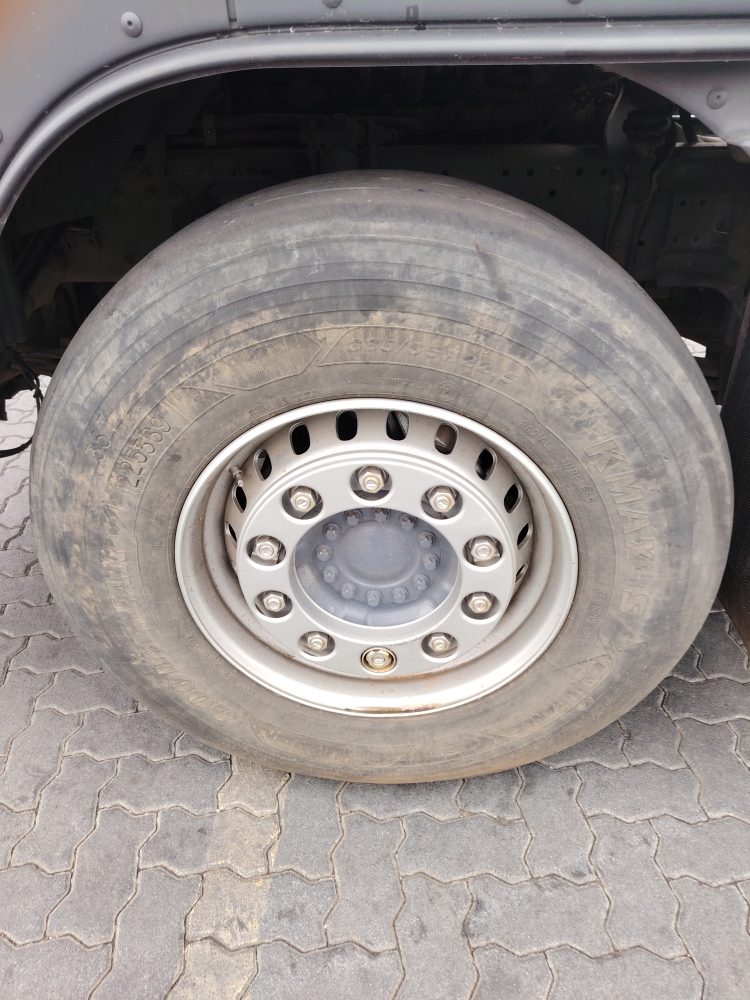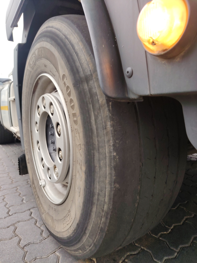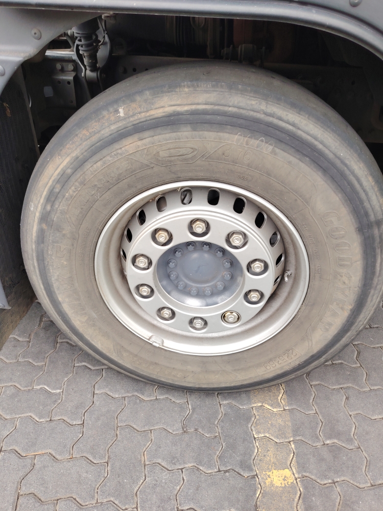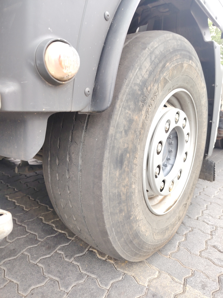 Axle 1 Left TyreR5 200Replace, Tread Depth, Virgin Tyre, Steel Rim385/65R22.5 Goodyear 4mm-replace