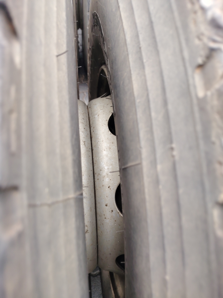 Axle 3 Left Inner TyreTread Depth, Virgin Tyre, Steel Rim315/80R22.5 Evergreen 6mm.