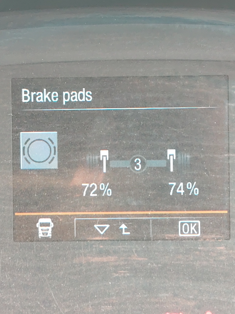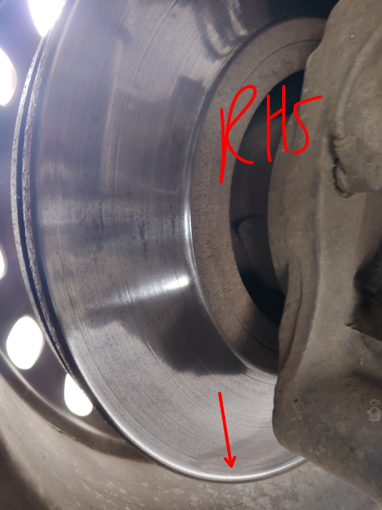 Axle 4 Brake CheckR8 000ReplaceBrake wear data LHS 72% RHS 74% Excessive ridge in RHS disc-replace