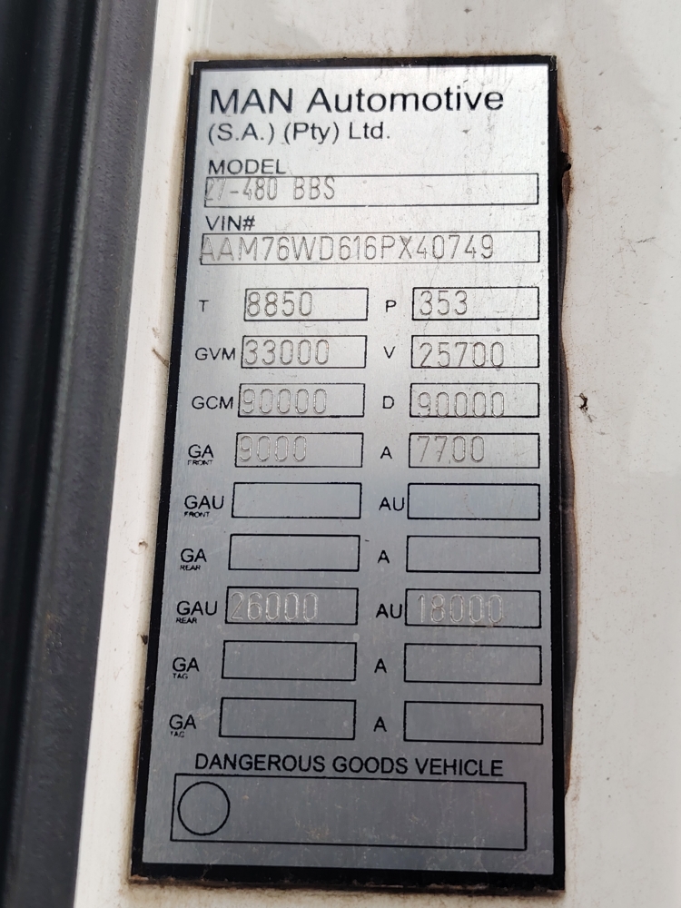 Vehicle M A N Tgs 27.480 6x4 Bbs Lx Sleep T/t C/c (2010-10/2021-11)