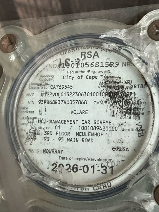 | Extras | R1 800 | Valid Fire Extinguisher | Fire extinguisher expired on
