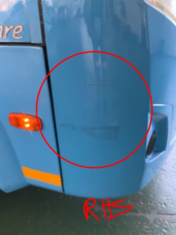 | Front Bumper | R1 800 | Scratch, Repair | Front bumper scratched on