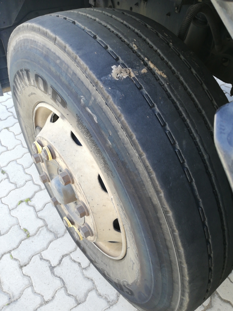 | Axle 1 Left Tyre | | Virgin Tyre, Steel Rim | Dunlop 295/80R22.5.. 6mm. |