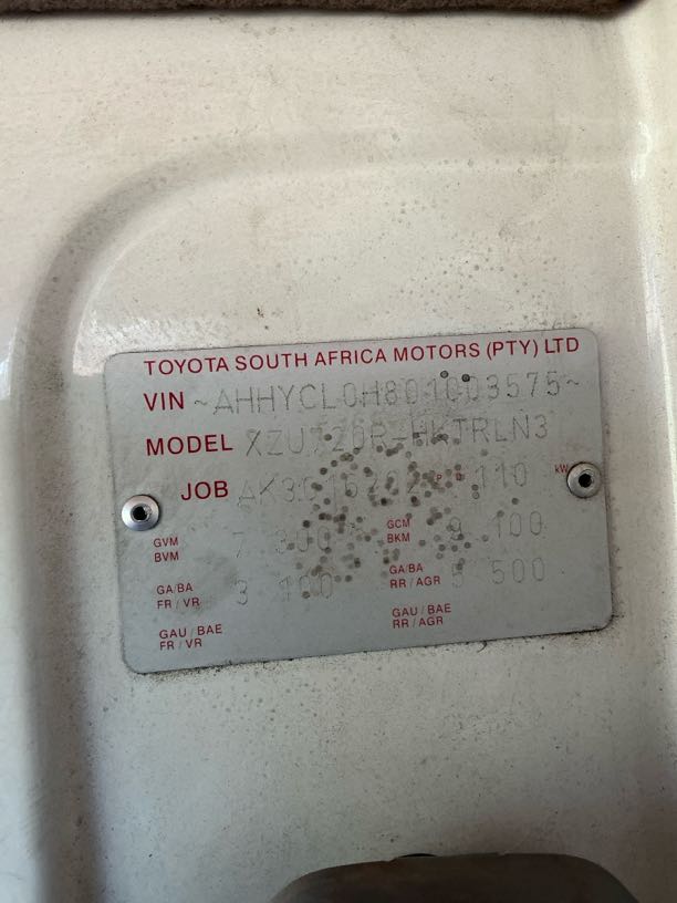 | Tyres&Wheels | R5 000 | Spare Wheel | No spare tire present-replace. |