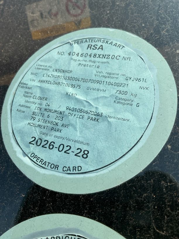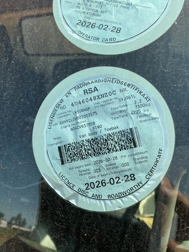 | Extras | R2 000 | Valid Fire Extinguisher | No fire extinguisher