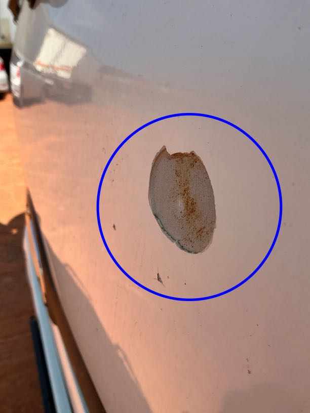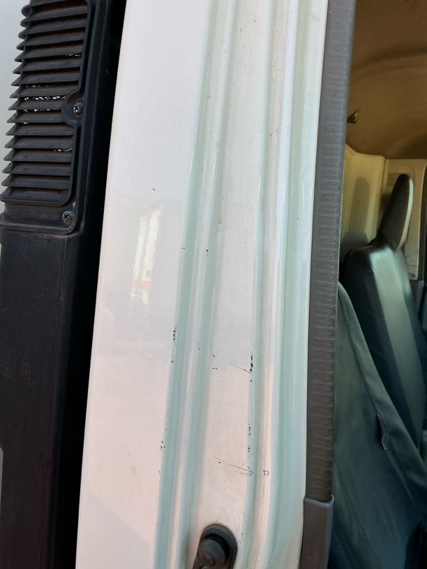 | Left Door | R2 500 | Scratch, Chip, Prev Repairs Noted, Crack, Buff & Polish, Bent, Repair | Door bent at hinges-repair to OEM