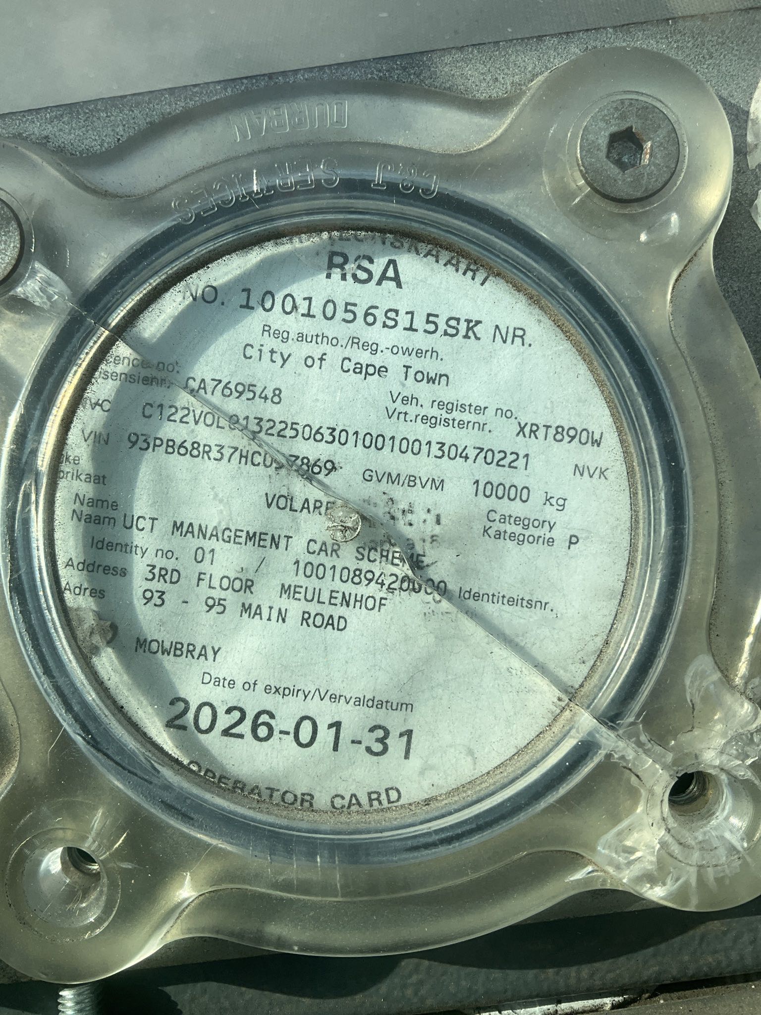 | Reg No | CA769548 |