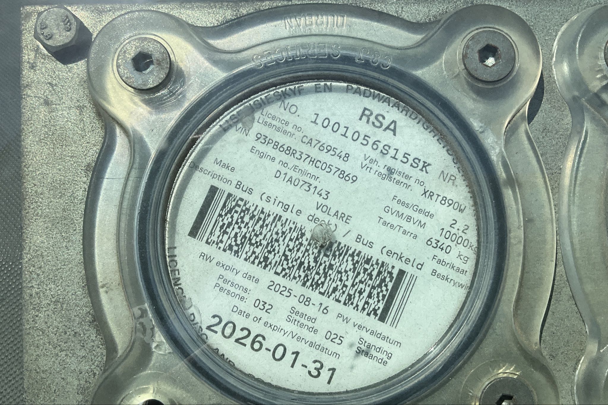 | Vehicle | Marcopolo Volare A8 28 Seat Lwb B/s B/s (2005-10/2023-03) |