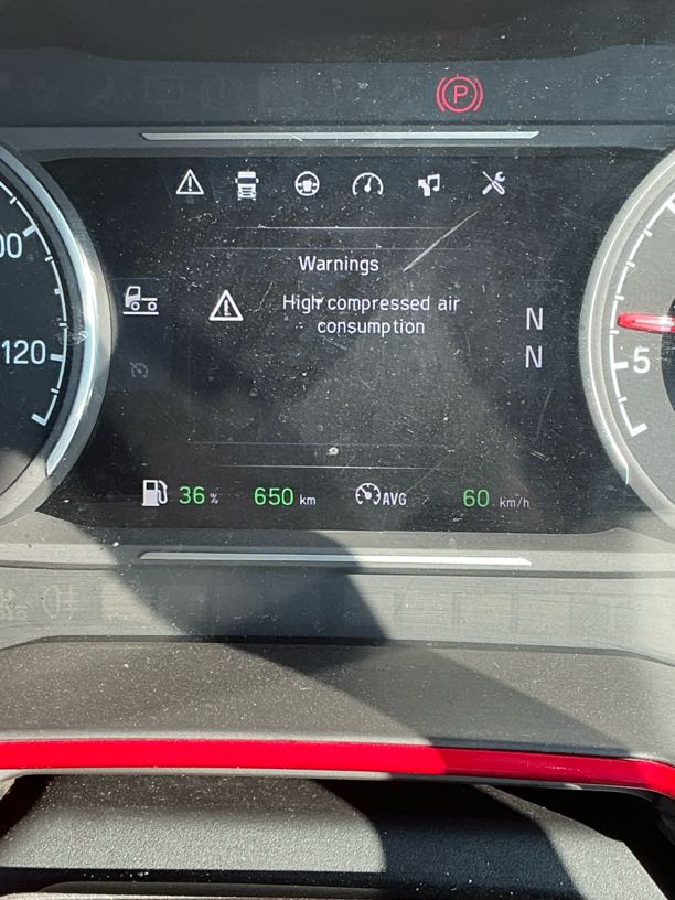Brakes | R2 500 | Air Pressure | Warning message, High compressed