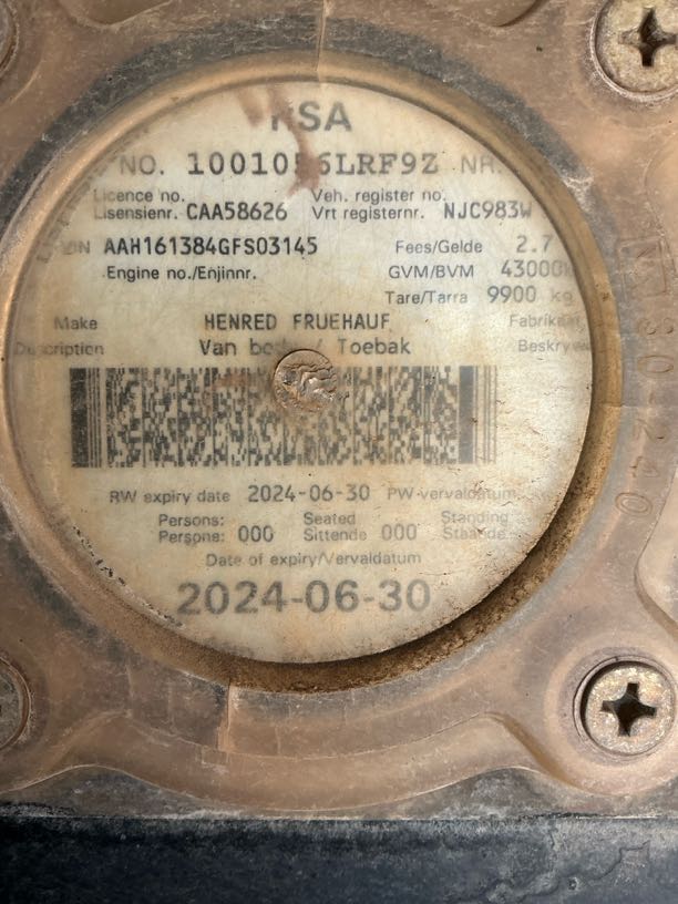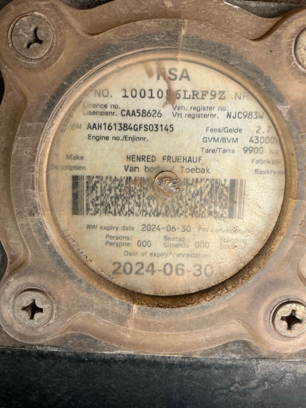 | Vehicle | Hendred Tridem Semi 14.7m Closed Body |