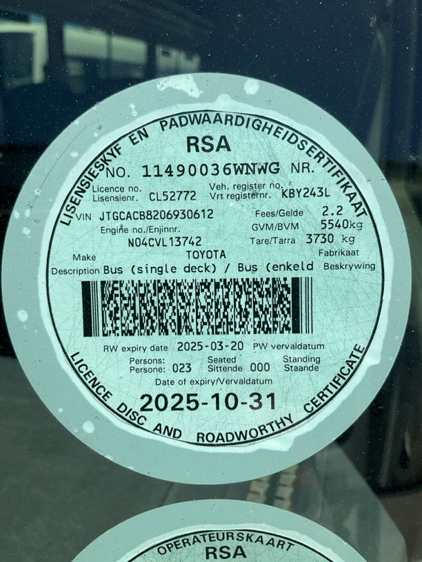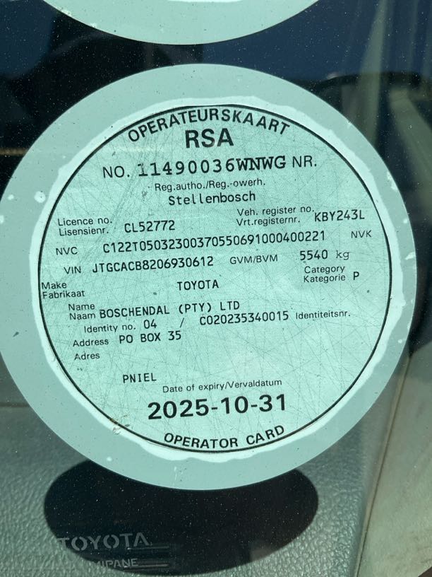 | Extras | R2 000 | Valid Fire Extinguisher | Unable to see expiry date on fire