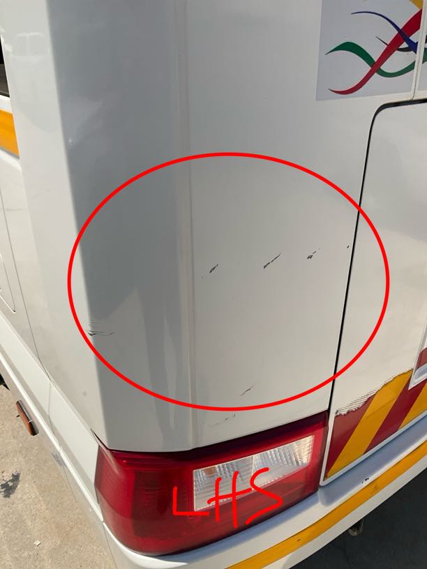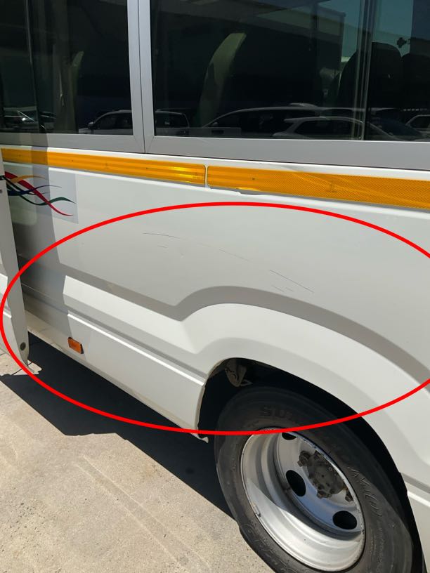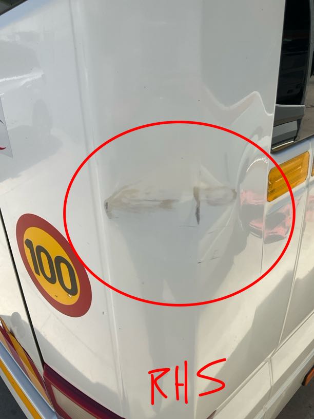 | Right Side Cab | R2 500 | Dent, Scratch, Repair | RHS of bus scratched at rear wheel