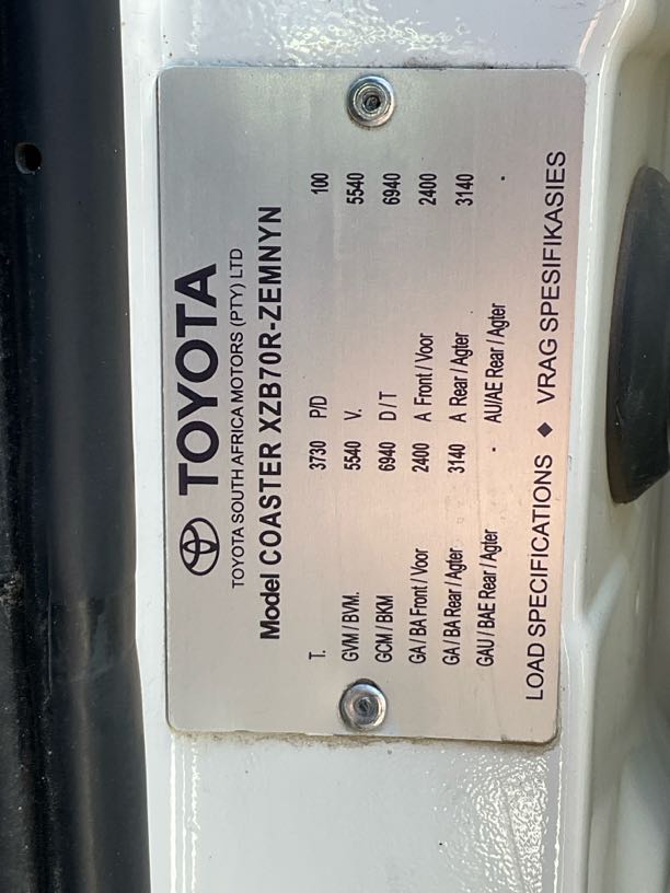 | Extras | | Additional Notes | Makers plate, license discs,