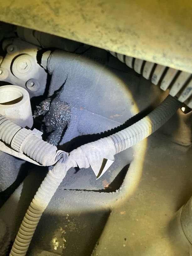 EngineR6 000OilCollection of oil and dirt at front crank seal-clean and repair.