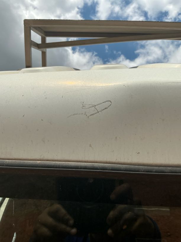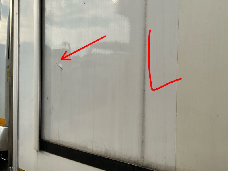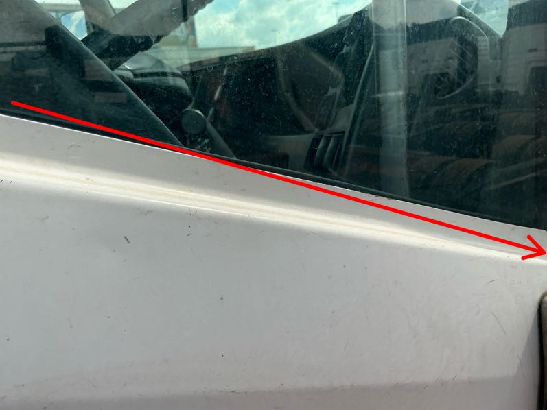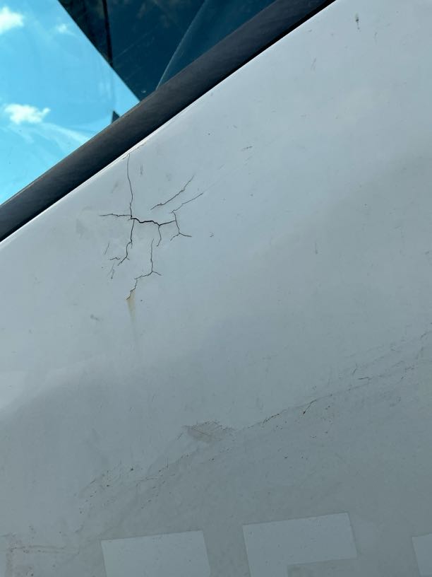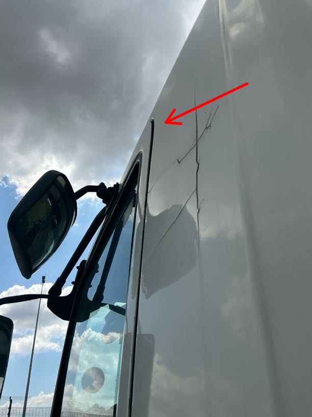 Left Side CabR4 500Signs of spray, Scratch, Chip, Prev Repairs Noted, Crack, Buff & Polish, RepairCracks noted on LH cab panel,seems to be a layer of putty-repair and respray to OEM standard at OEM approved panel beater. Scratches and paint worn off-repair and respray to OEM standard.