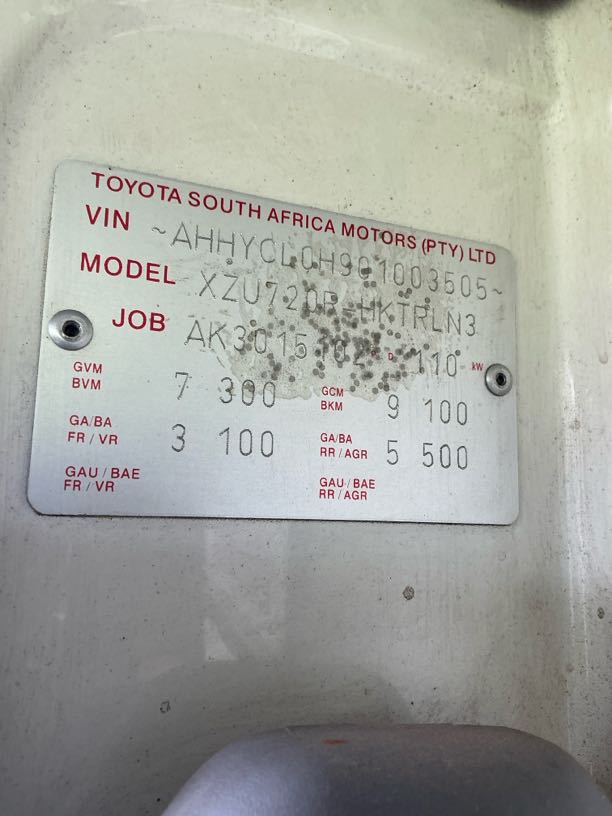 | Rear Cab | R1 500 | Scratch, Rust, Chip, Repair | Chips and scratches noted-suggest
