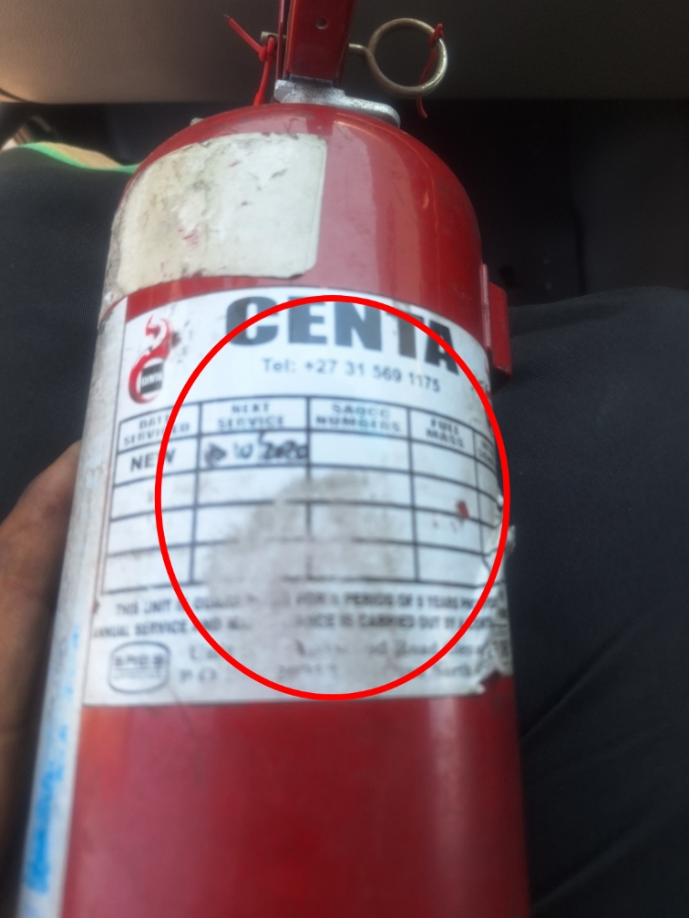 | Extras | | Valid Fire Extinguisher | Present at inspection to be