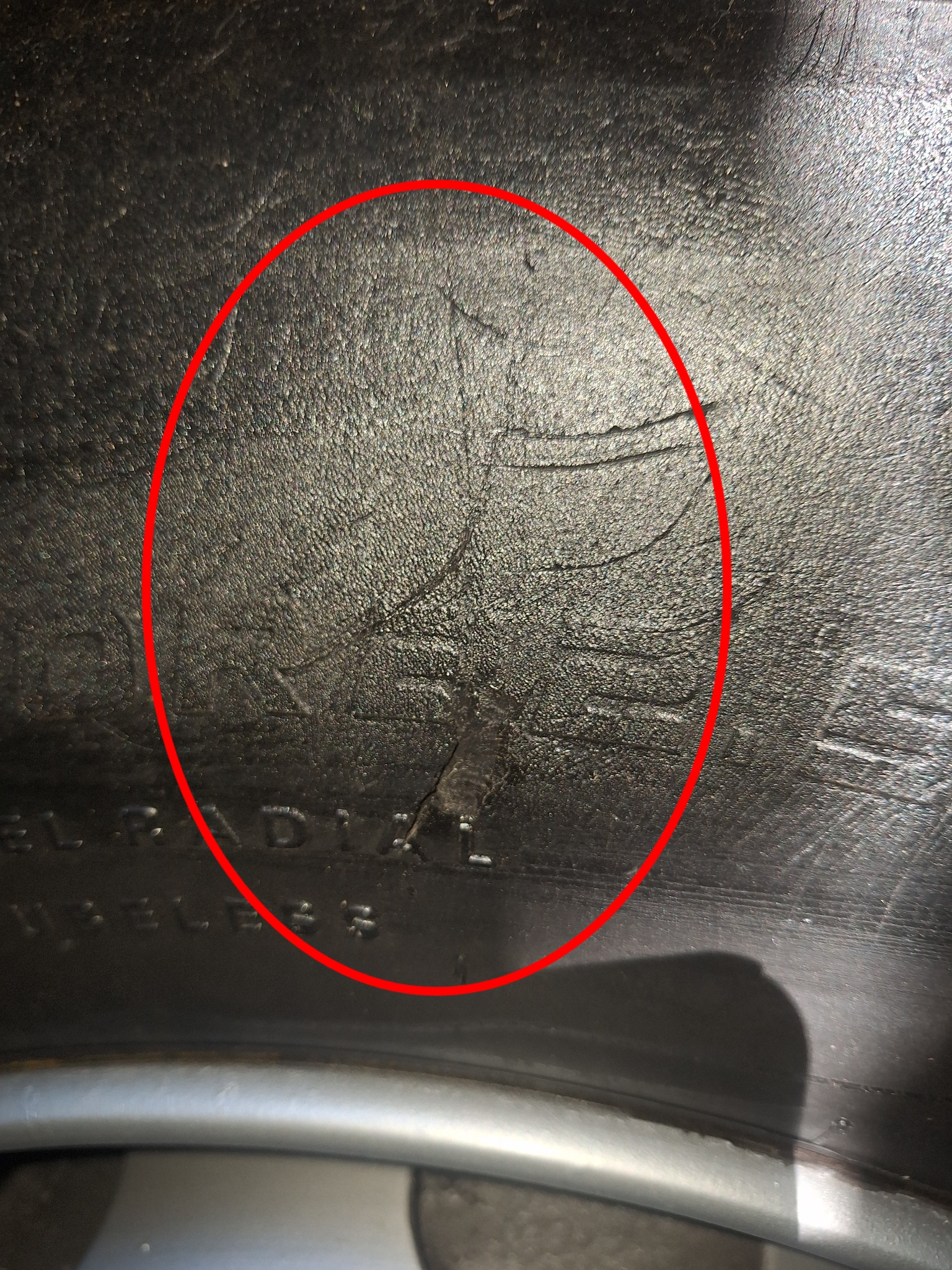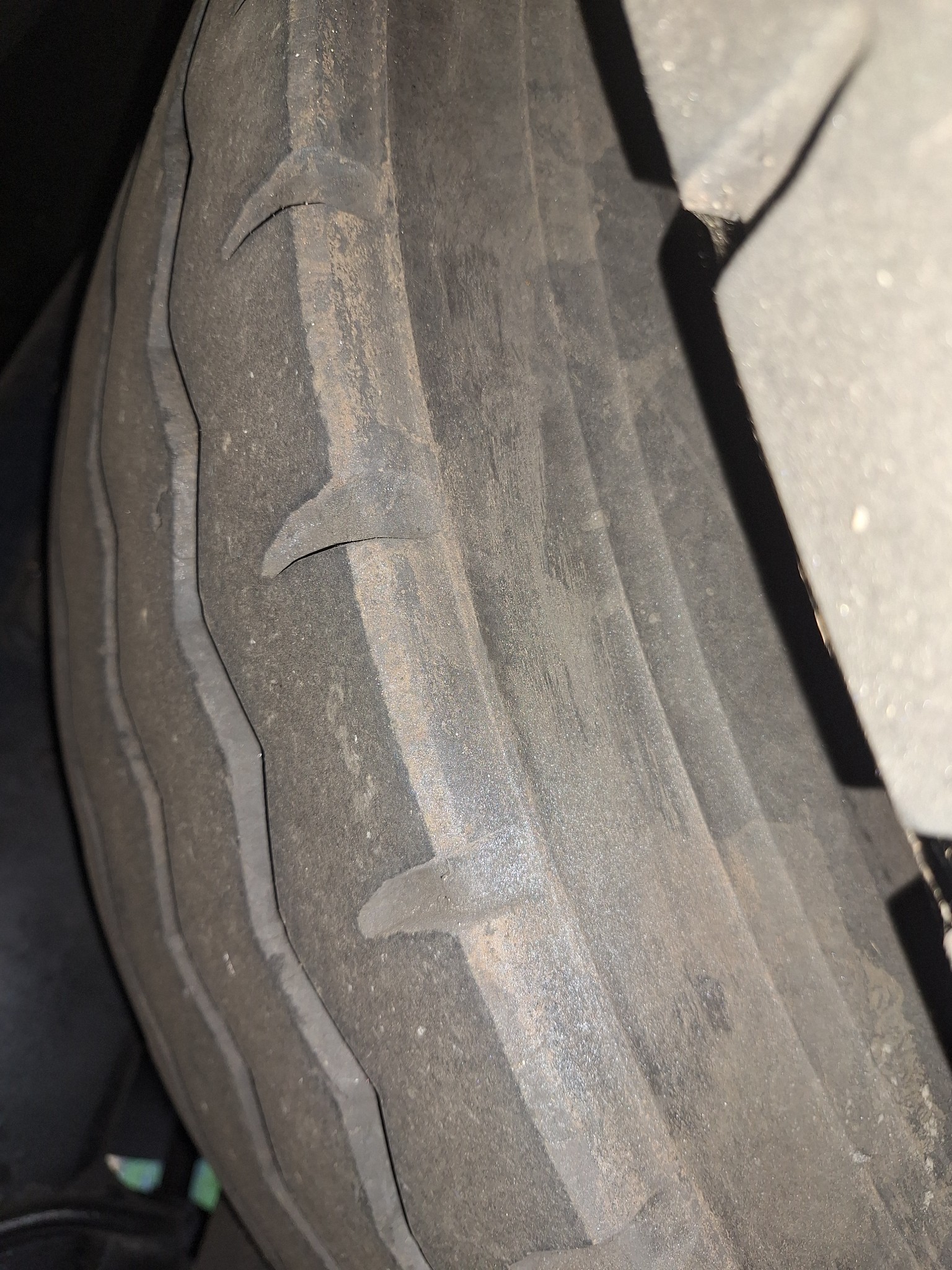 damaged; tyre to be replaced to oem
